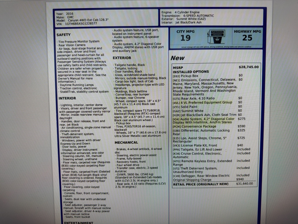 2016 GMC Canyon – 127101