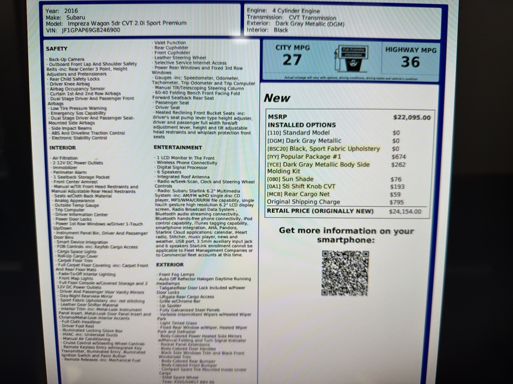2016 Subaru Impreza Sport S/R NAVI – 127920
