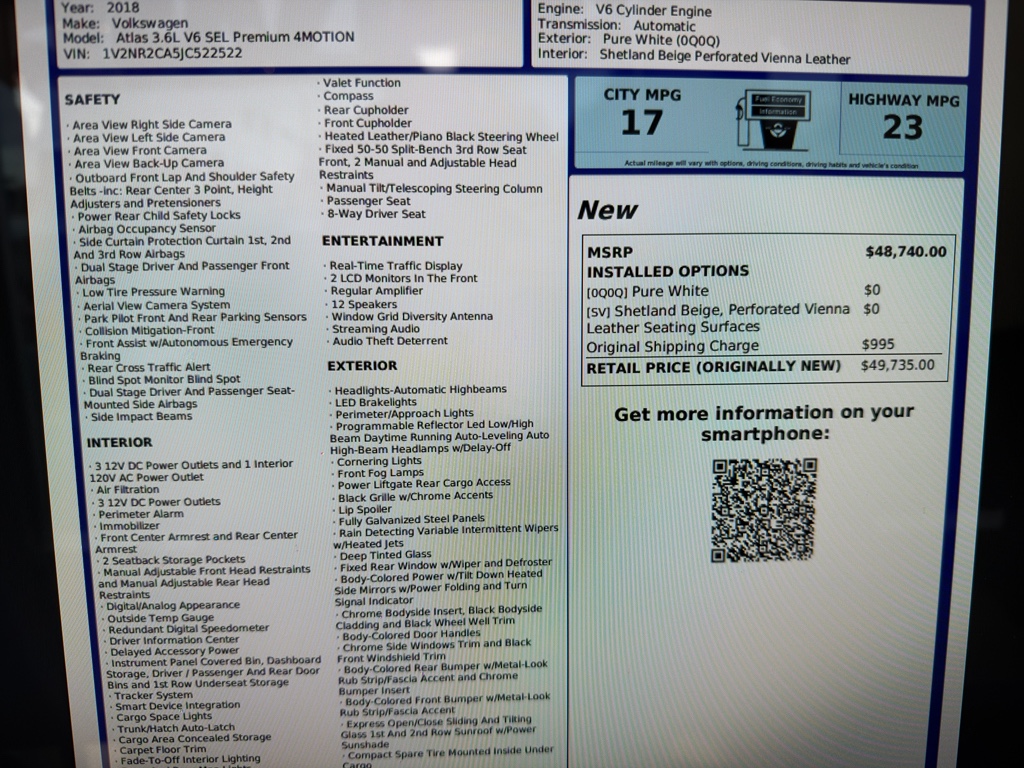 2018 Volkswagen Atlas SEL Premium 4Motion – 127620