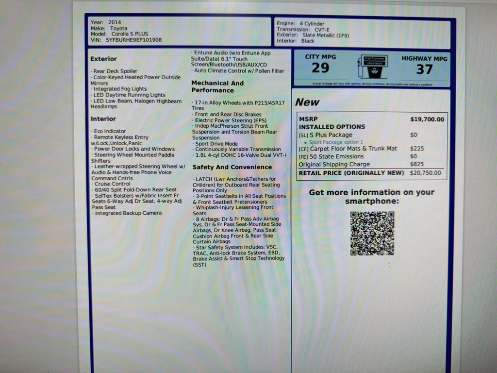 2014 Toyota Corolla S Plus – 128610
