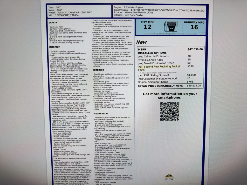 2001 GMC Yukon XL Denali – 128891