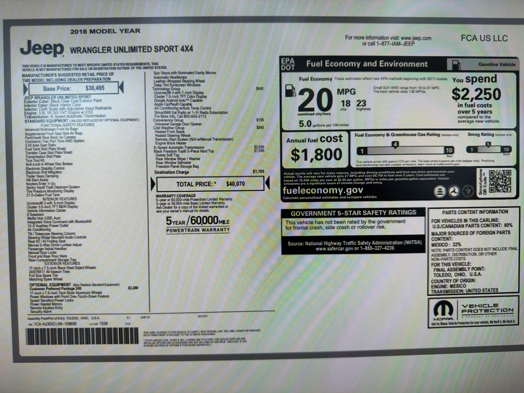 2018 Jeep Wrangler Unlimited Sport – 125880