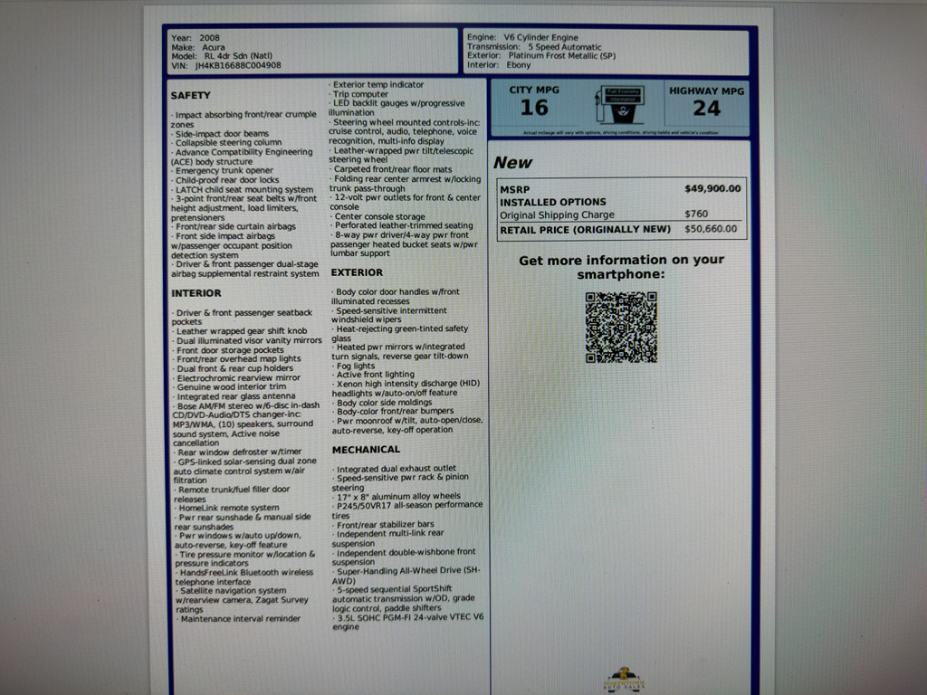 2008 Acura RL 3.5RL w/Tech Pkg. – 126920