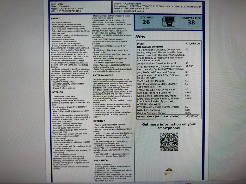 2012 Chevrolet Cruze 2LT – 126930