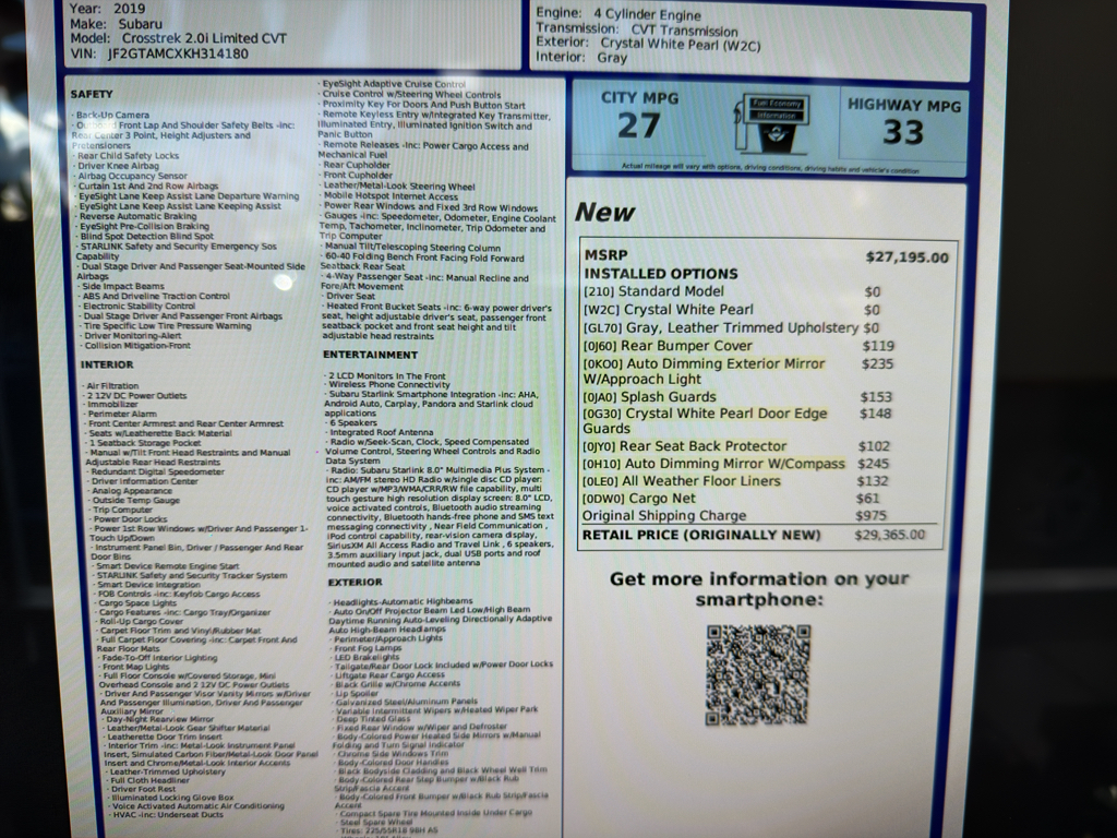 2019 Subaru Crosstrek Limited Sport – 126990