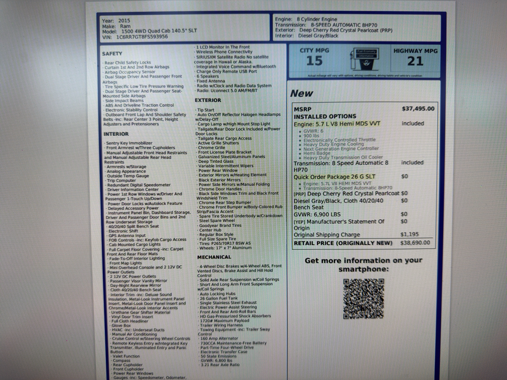 2015 Ram 1500 SLT – 128621
