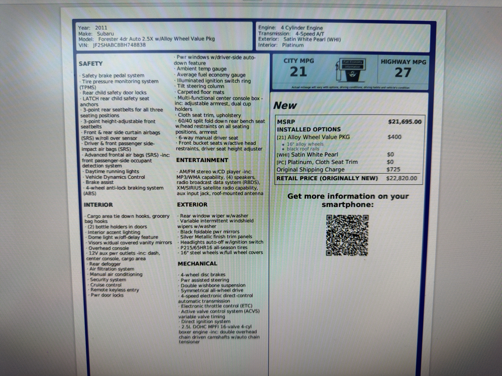 2011 Subaru Forester 2.5X – 129870