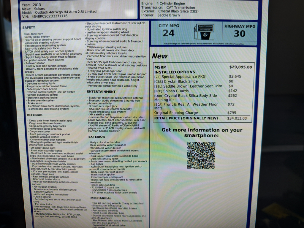2013 Subaru Outback 2.5i Limited – 129990