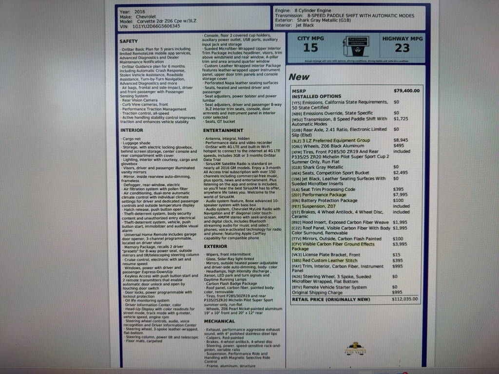 2016 Chevrolet Corvette Z06 3LZ – 127510