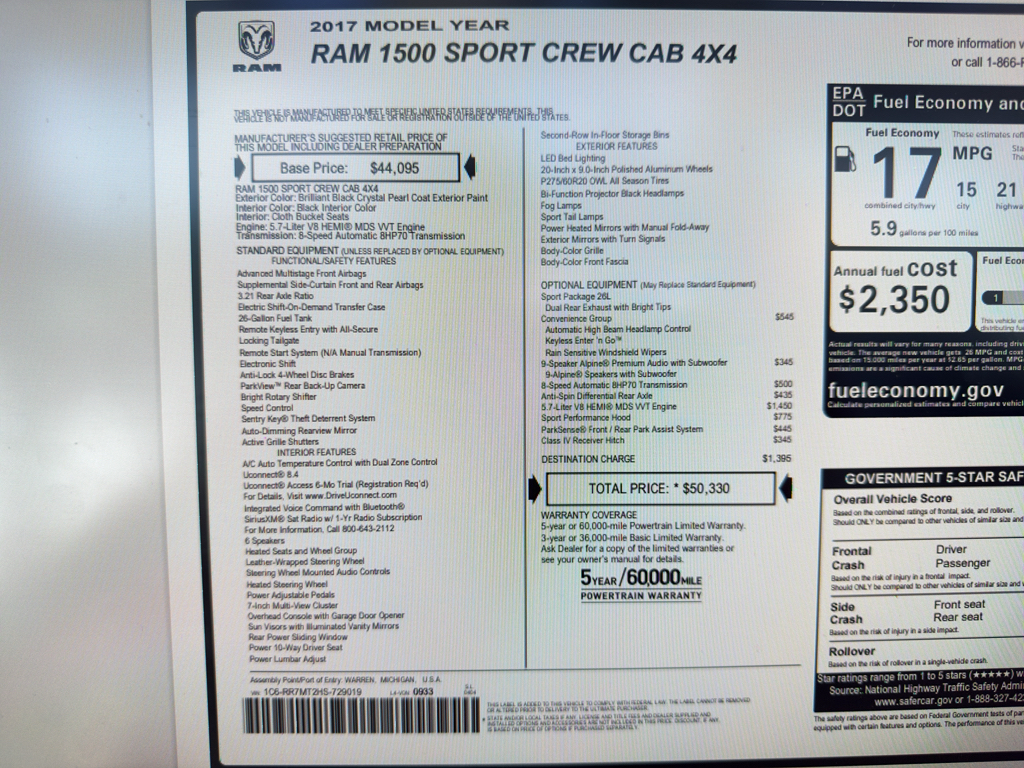 2017 Ram 1500 SPORT – 129340