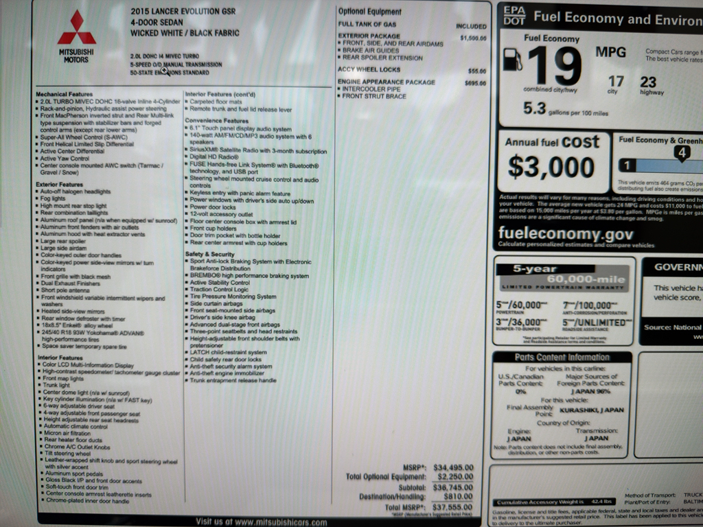 2015 Mitsubishi Lancer Evolution GSR – 129620