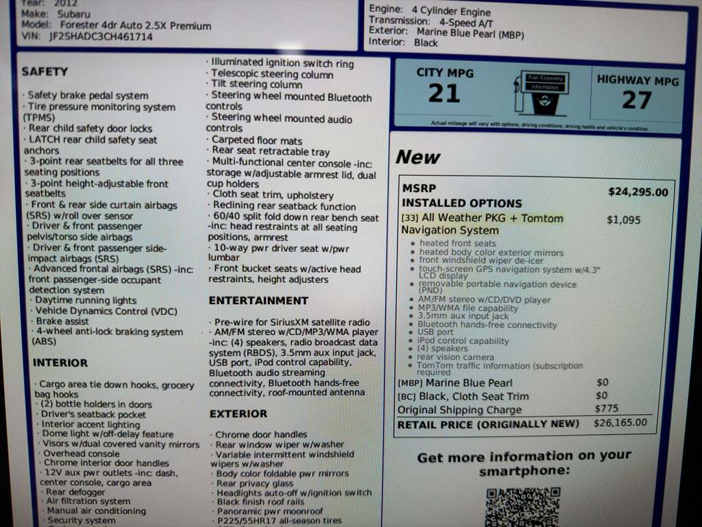 2012 Subaru Forester 2.5X Premium AWP – 127020