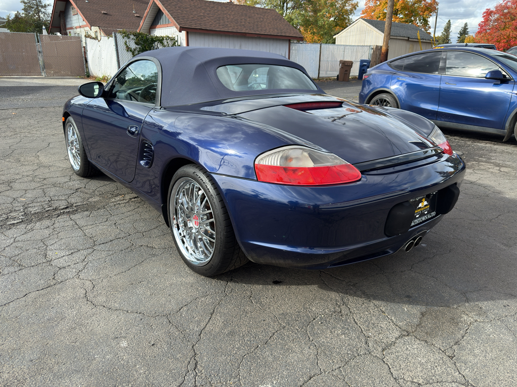 Turn heads in this classic 2003 Porsche Boxster, now available in Spokane, WA. This rear-wheel-drive roadster features a spirited 6-cylinder, 2.7L (2687 cc) gasoline engine that delivers engaging performance, precise handling, and the authentic Porsche driving experience. The interior is appointed with leather seats that provide comfort and style for spirited drives or daily use. Premium wheels enhance both appearance and cornering capability, underscoring the Porsche Boxster's athletic stance.