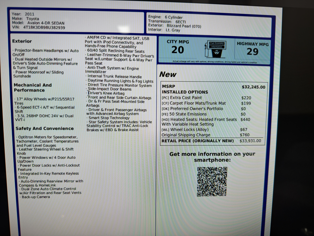 This 2011 Toyota Avalon in Spokane, WA combines comfort, technology, and performance at the best price around. If you want a well-equipped sedan with leather seating, satellite/XM radio, Bluetooth connectivity, and a back-up camera—this Toyota Avalon is the smart buy. Contact today to schedule a test drive and experience the value firsthand.