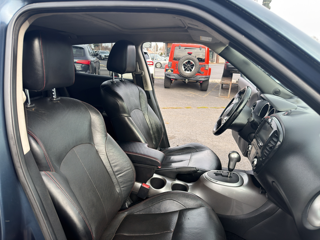 Step inside the premium leather seats and enjoy a refined cabin experience. The integrated navigation system keeps you on course, while the back-up camera makes parking and tight maneuvers effortless. Stay connected hands-free with Bluetooth for calls and audio streaming, adding convenience and safety on every drive. Premium wheels enhance the Nissan Juke's distinctive look and contribute to a poised, composed ride.