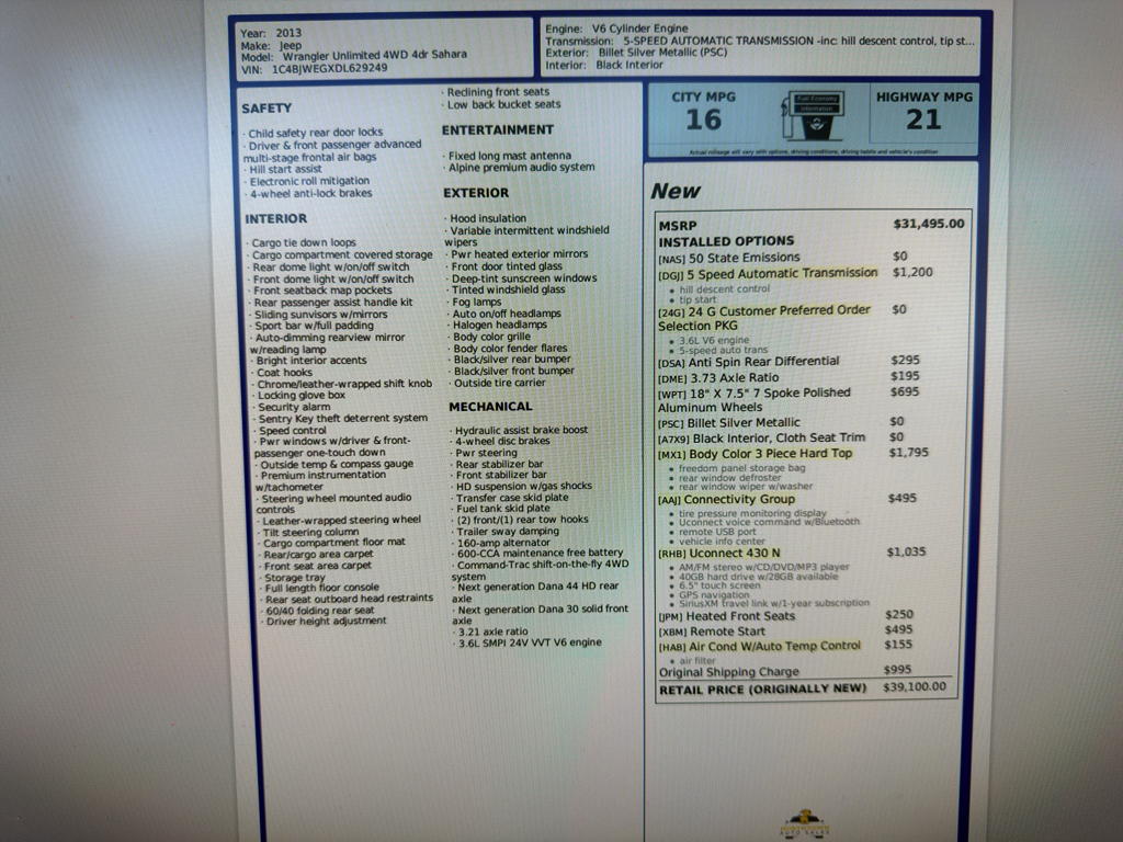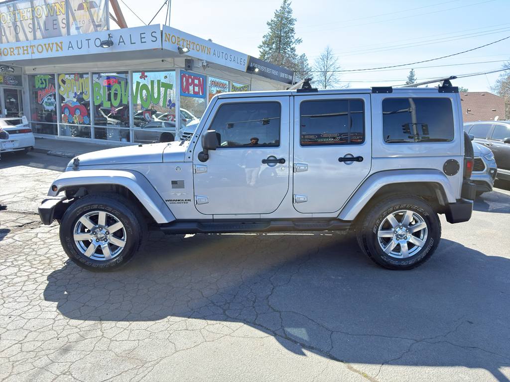 2013 Jeep Wrangler Unlimited Sahara 4WD — V6 3.6L Gasoline, located in Spokane, WA. This rugged, versatile SUV combines iconic Jeep capability with Sahara-level comfort and modern convenience, making it an ideal choice for Pacific Northwest adventures. Powered by a responsive 3.6L V6 and equipped with full-time 4WD, the Jeep Wrangler Unlimited delivers confident performance on wet roads, gravel, and snowy passes. Premium wheels enhance on-road stability and style, while heated front seats provide warmth during cold Spokane mornings.