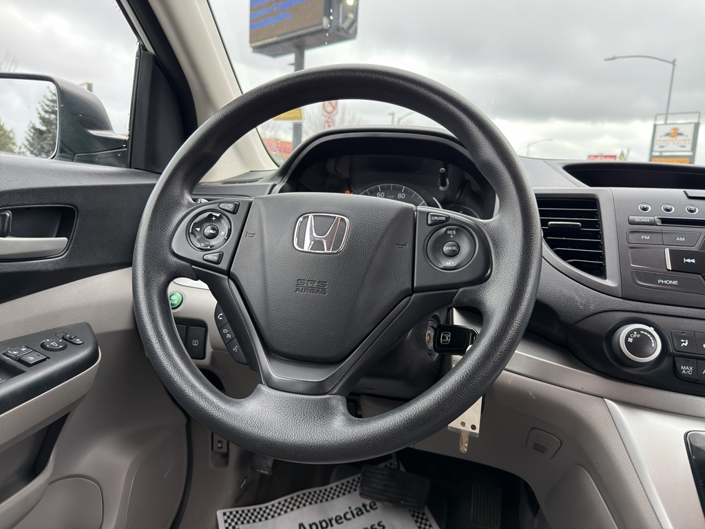 Discover dependable performance and value with this 2014 Honda CR-V LX, now available in Spokane, WA. Powered by a fuel-efficient 4-cylinder 2.4L gasoline engine, this compact SUV delivers smooth daily driving, impressive fuel economy, and Honda's reputation for long-lasting reliability. The Honda CR-V LX is intelligently equipped for modern convenience and safety, featuring a Back-Up Camera for easier parking and reversing, Hands Free Bluetooth for safe, connected calls and audio streaming, and Premium Wheels that enhance both appearance and ride quality.