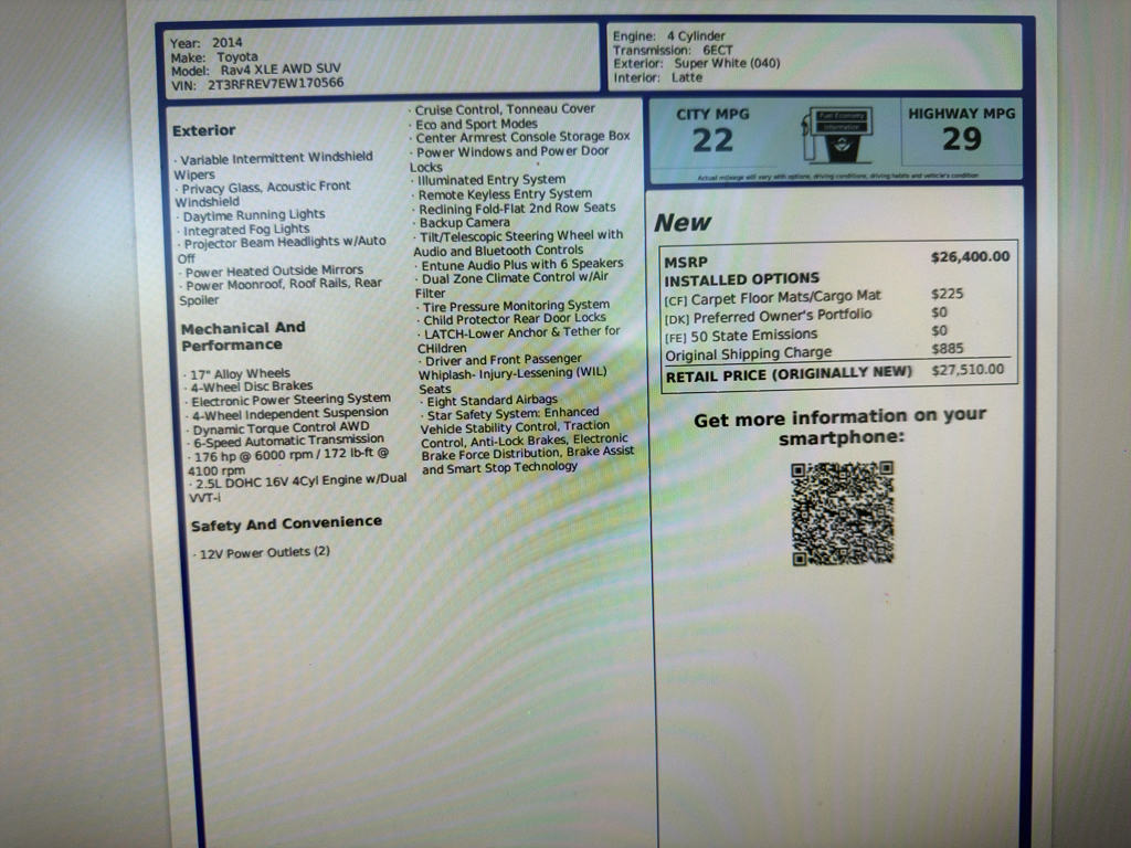 Vin # 2T3RFREV7EW170566 |