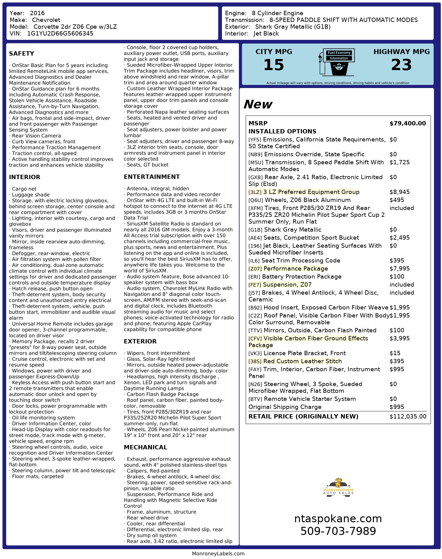Whether you're seeking weekend thrills or an everyday performance car, this 2016 Chevrolet Corvette Z06 3LZ offers exceptional value and capability. Located in Spokane, WA, this vehicle is priced competitively to deliver the best price on a high-grade, well-equipped Chevrolet Corvette Z06. Don't miss the opportunity to own a legendary American sports car with premium comfort, modern technology, and uncompromised performance. Contact us to schedule a test drive and see why this Chevrolet Corvette stands out among pre-owned performance cars.