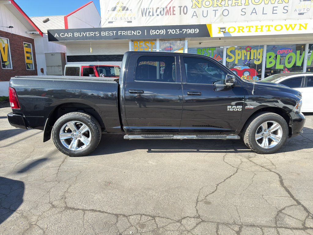 2017 Ram 1500 SPORT 4WD — powerful V8 performance and rugged capability available now in Spokane, WA. This well-maintained pickup features the reliable 5.7L V8 gasoline engine and four-wheel drive for confident towing, hauling, and off-road control. Finished with sporty styling and premium wheels, the SPORT trim pairs aggressive looks with functional capability for work and weekend adventures.