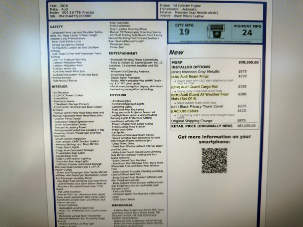 Finished with meticulous attention to detail, this 2018 Audi SQ5 Prestige offers an unparalleled driving experience that combines performance, luxury, and technology in perfect harmony. Don’t miss your chance to own this exceptional vehicle that truly stands out from the crowd. Embrace the road like never before with the Audi SQ5 Prestige.