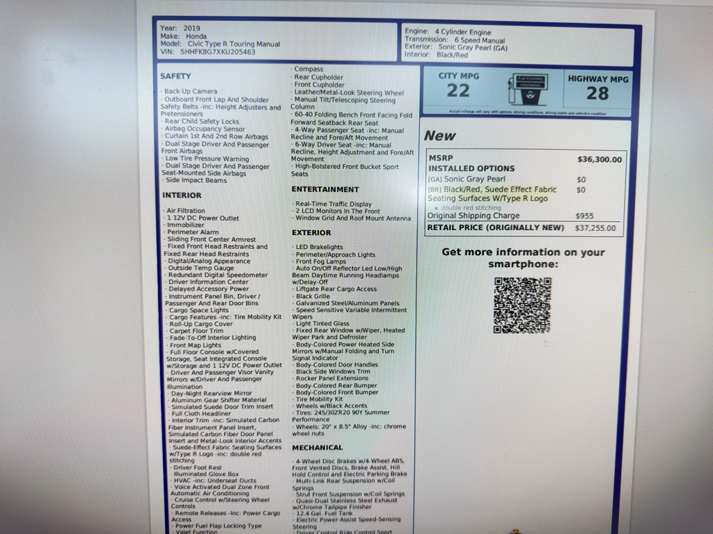 Located in Spokane, WA, this 2019 Honda Civic Type-R Touring is maintained to high standards and ready for immediate delivery. For additional information, vehicle history, or to schedule a test drive, contact our Spokane showroom to arrange a personalized appointment.