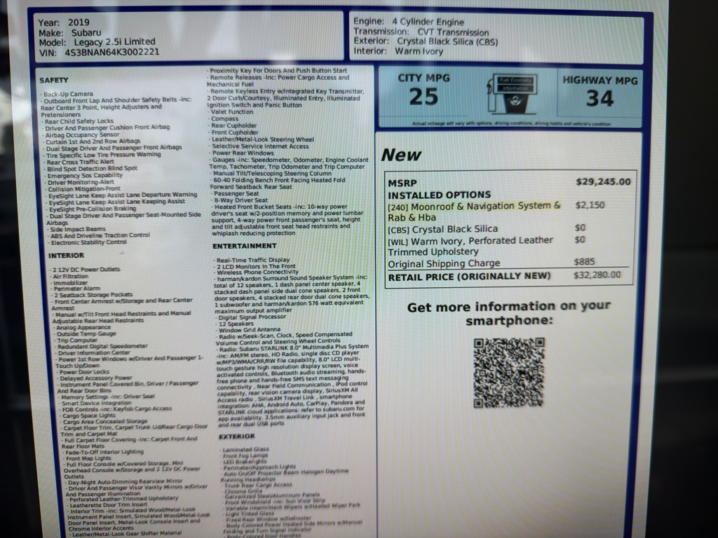 Priced competitively as the best price in the area, this 2019 Subaru Legacy Limited presents a compelling combination of safety, comfort, and performance. Located in Spokane, WA, it's ready for immediate test drives and local delivery. Contact us to schedule a viewing or to request the CARFAX report and additional vehicle details. Don't miss this opportunity to own a capable, well-equipped Subaru Legacy at a great price.