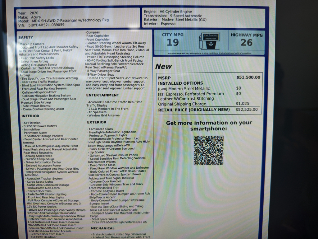 2020 Acura MDX Technology Package
