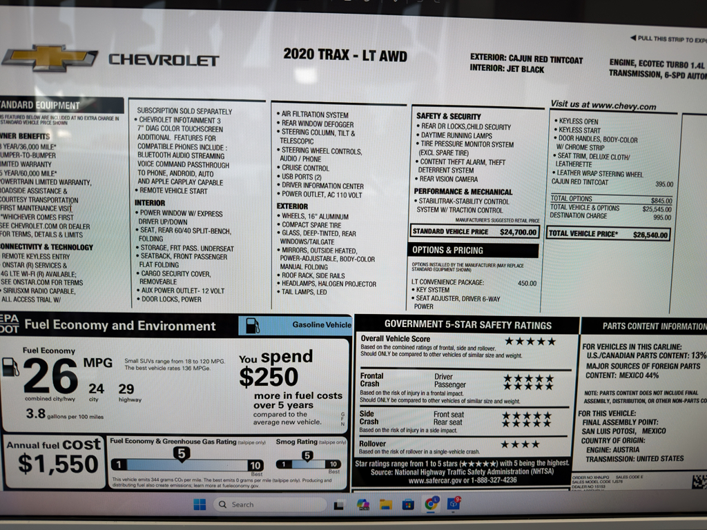 Discover this 2020 Chevrolet Trax 1LT AWD, now available in Spokane, WA — a compact SUV that combines efficiency, versatility, and smart technology at the best price in the area. Powered by a responsive 4-cylinder 1.4L gasoline engine and equipped with all-wheel drive, this Chevrolet Trax delivers confident handling and efficient performance for city streets and regional adventures alike.