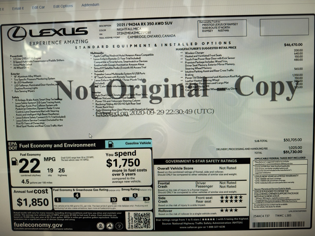 Meticulously maintained and ready for immediate delivery, this Lexus RX 350 offers exceptional value and is competitively priced—presenting the best price in the area for a luxury SUV of this caliber. Located in Spokane, WA, the vehicle is available for inspection and test drives at your convenience. If you're seeking a luxury crossover that combines reliability, technology, and performance, this 2021 Lexus RX 350 AWD with a 3.5L V6 is an outstanding choice. Contact us to schedule your appointment today.