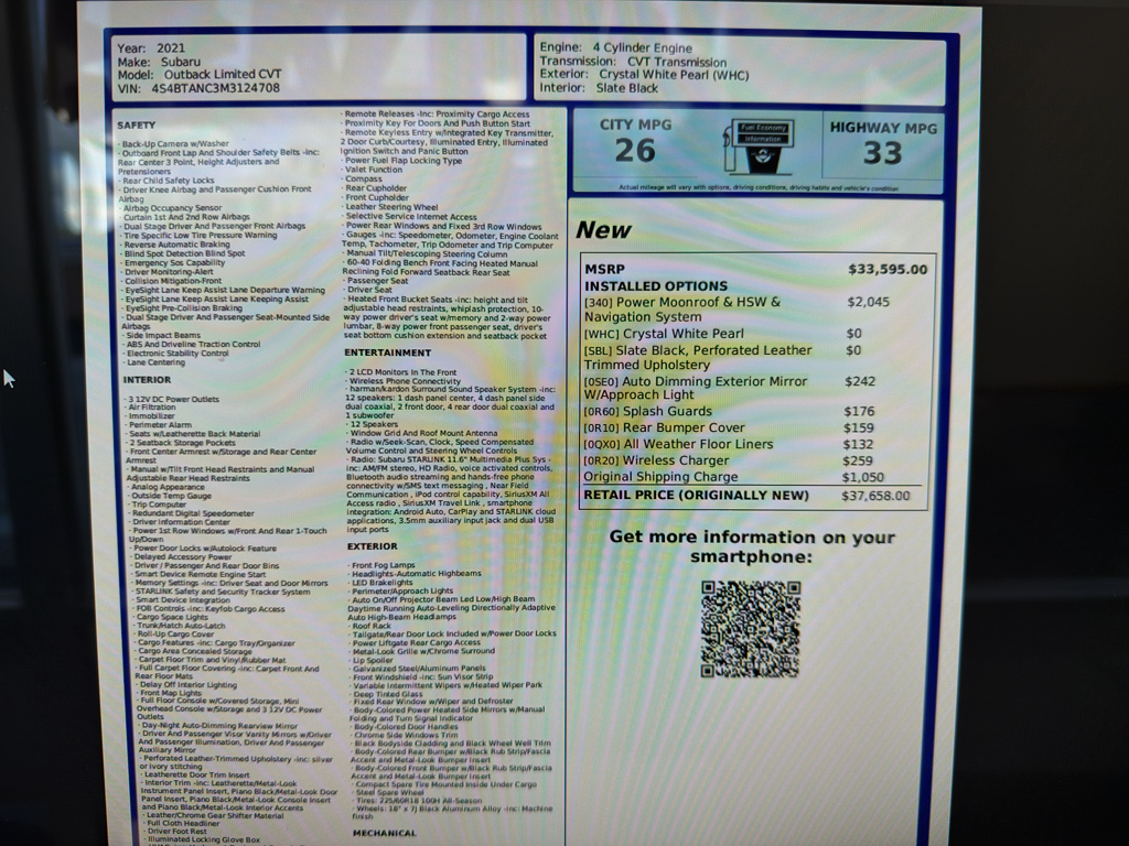 You'll appreciate the spacious interior, generous cargo room, and Subaru's reputation for longevity and safety. The Limited trim adds upscale touches and tech conveniences that make every drive more enjoyable. With competitive pricing, this Subaru Outback offers the best price in Spokane, WA - exceptional value when compared to similar listings.